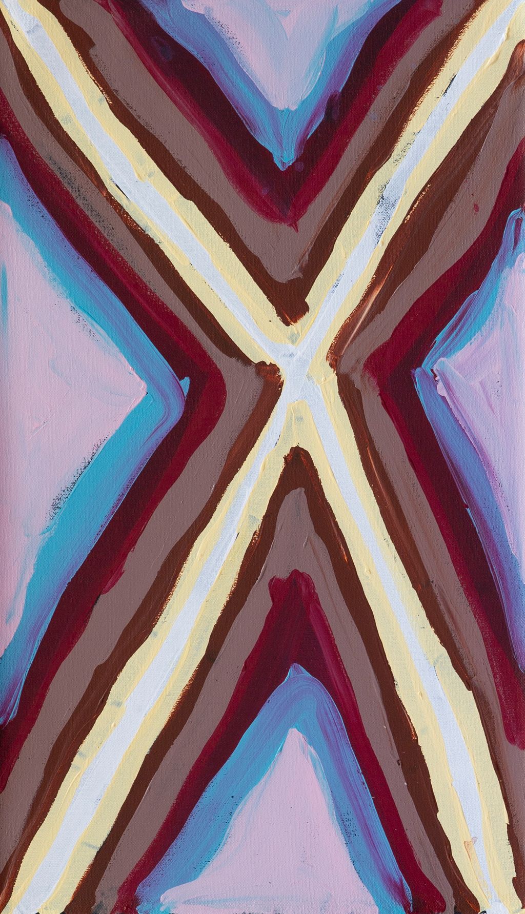 Kumpupirntily lies within Anya’s ngurra (home Country, camp) through her family. This a stark, flat and unforgiving expanse of blinding salt lake is surrounded by sand hills, and located in the Little Sandy and Gibson Desert of Western Australia. Kumpupirntily translates to ‘bladder burst’; the lake was formed when the bladder of the Jila Kujarra (Two Snakes) burst here. Jila Kujarra is one of the key Jukurrpa (Dreaming) narratives for the Martu. Though the story belongs to Warnman people, it is shared across the Western Desert with several other language groups. The narrative centres on the travels of two snakes as they are pursued by the Niminjarra, spiritual ancestors of the Warnman people.