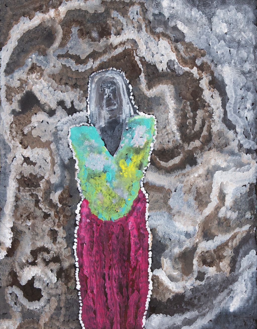 As Sylvia explains, the work is both a depiction of, and attribute to, the women in her life. “I follow my great grandmother’s guidance and direction in life. These women in my life carry so much on their shoulders, as well as the responsibility and future of our culture.”