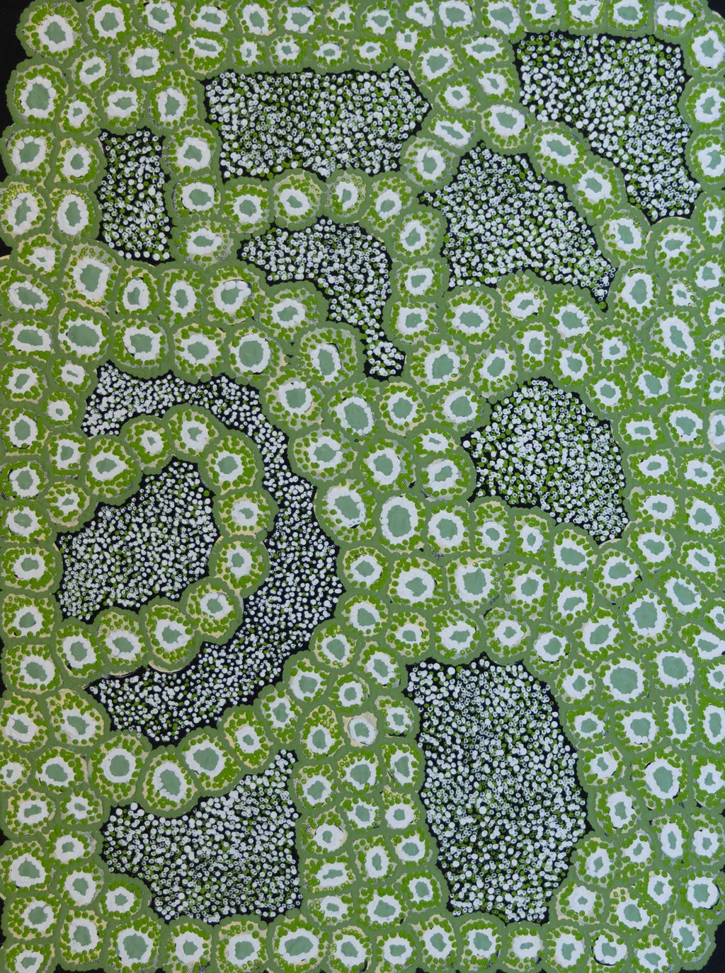Painting ngurra, and in so doing sharing the Jukurrpa (Dreaming) stories and physical characteristics of that place, has today become an important means of cultural maintenance. Physical maintenance of one’s ngurra, like cultural maintenance, ensures a site’s wellbeing, and is a responsibility of the people belonging to that area.