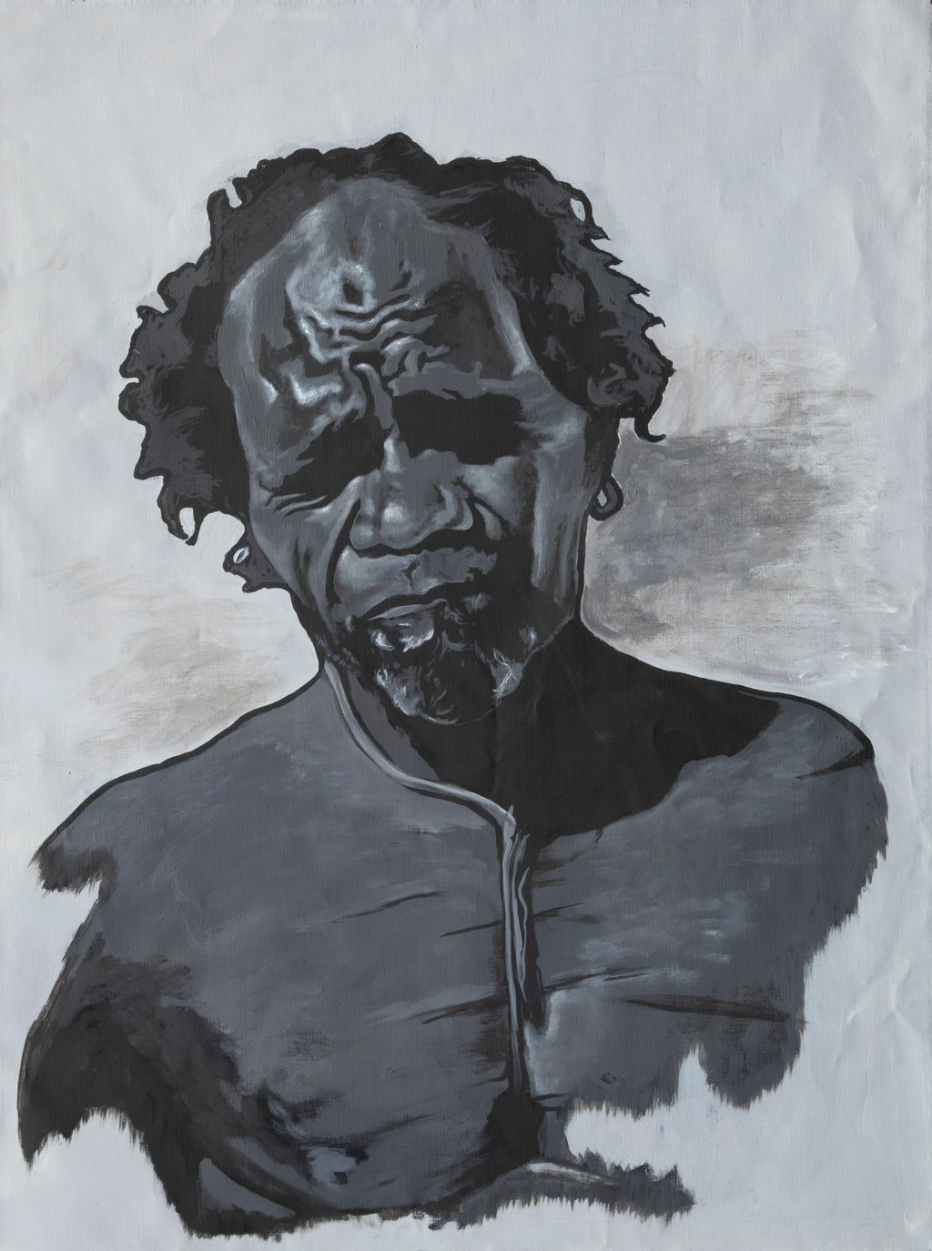 This artwork is a depiction of a valued Martu. The artist, Owen John (OJ) Biljabu is a proud Martu man from the Western Deserts, which range from Newman to Kunawarritji. Traditionally, Martu artists are not known for portraiture, however OJ has chosen to use traditional acrylic painting techniques to depict his community, other Martu artists and important figures in his life. He is currently the only member of Martumili Artists to do this, and is forging his own path with his self-taught techniques The traditional lands of the Martu people encompass the Great Sandy Desert and Rudall River regions of Western Australia, and include speakers of Manyjilyjarra, Warnman, Kartujarra, Putijarra and Martu Wangka languages. Martumili Artists work in the Newman based gallery and studio spaces, as well as within remote Aboriginal communities Punmu, Parnngurr, Kunawarritji, Jigalong, Irrungadji (Nullagine), and Warralong. Recognised for their diverse, energetic and unmediated painting styles, their works reflect the dramatic geography and scale of their homelands. The artists are predominantly painters, working in acrylics and oils, though many also weave baskets from gathered grasses and wool. Popular mediums among younger Martu artists include photography and animation. The group proudly maintain their creative practices whilst pursuing social and cultural obligations across the Martu homelands