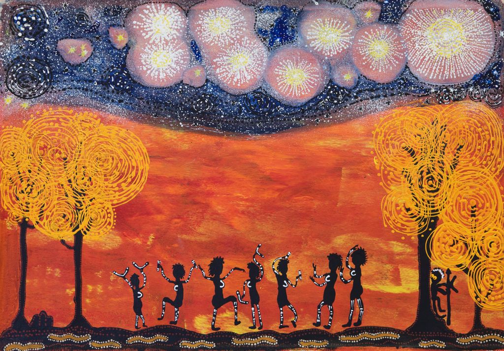 The Pleiades constellation is connected to the Seven Sisters story across dreaming stories throughout Australia. This story generally tells of a group of young women being pursued across the sky, often by a male figure represented by another constellation. While details vary between regions and communities, the Seven Sisters story is a central dreaming narrative.