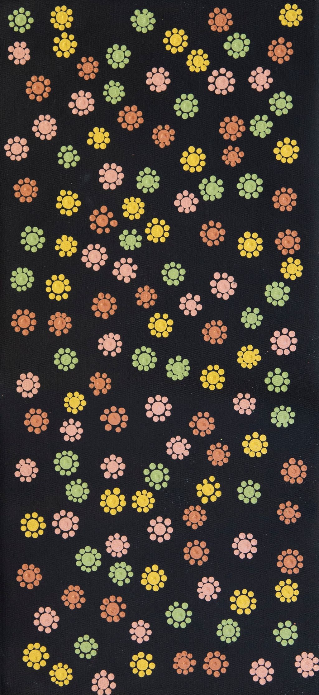 This work depicts the remarkably diverse flora found through Martu Country. These plants are not only vital as significant food sources, but also celebrated for their aesthetic splendour. In the context of the often harsh and arid environments in which desert flowers bloom, their vibrancy, delicacy, and variation become even more spectacular.