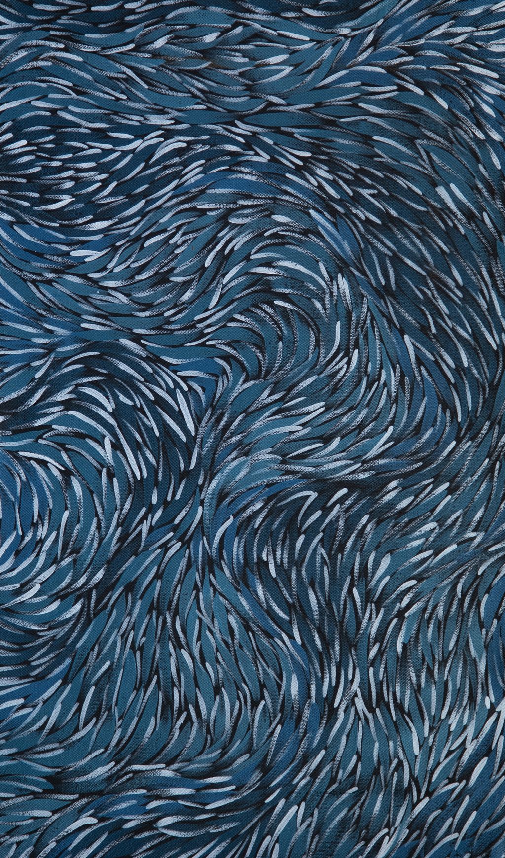 “When I paint with these colours and in this style, it reminds me of when I was back in Bidgydanga, watching the water and currents flow.”